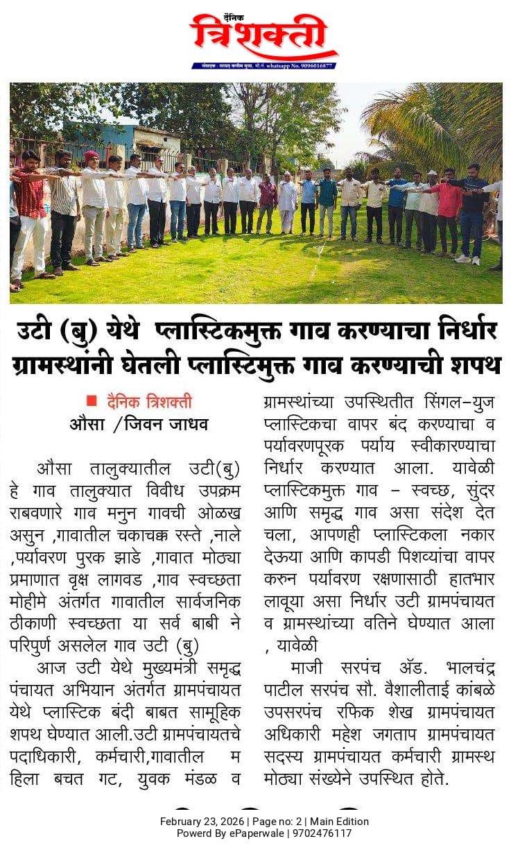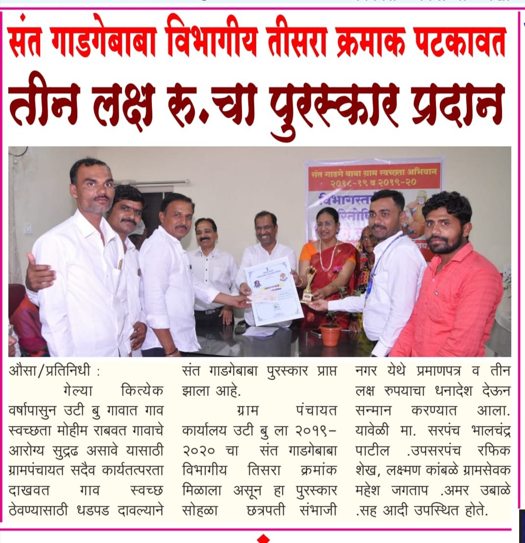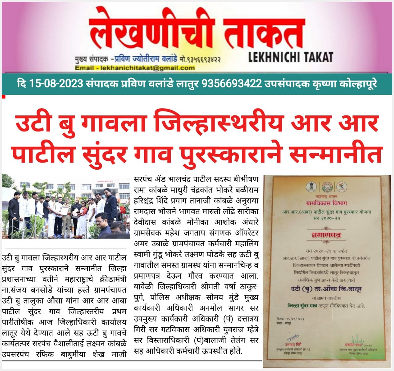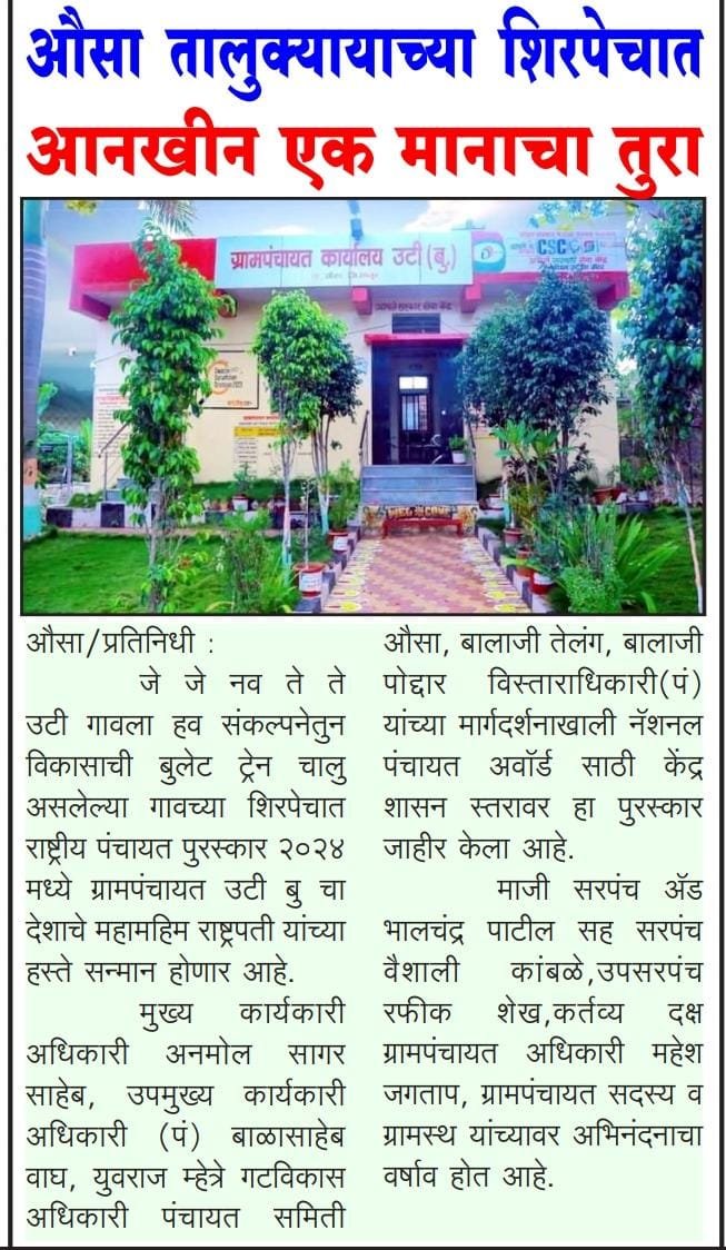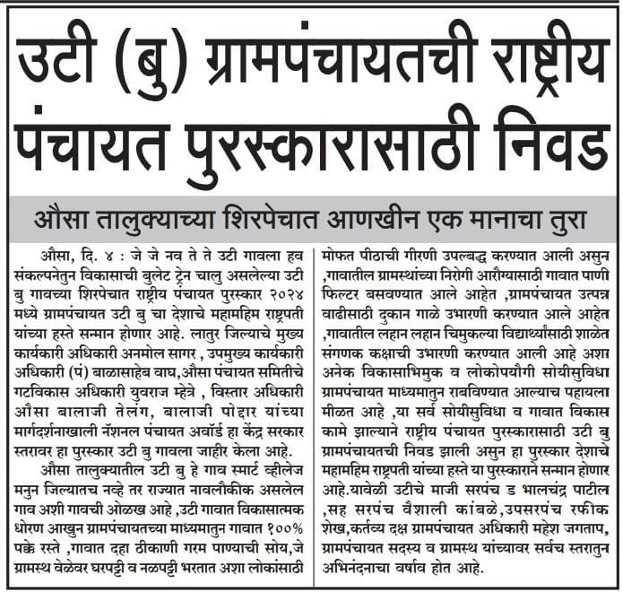 उटी (बु.) गावाच्या उल्लेखनीय कार्याची दखल विविध वर्तमानपत्रांनी घेतली आहे. खालील गॅलरीमध्ये तुम्ही ती कात्रणे पाहू शकता