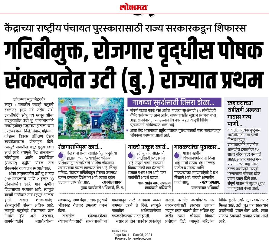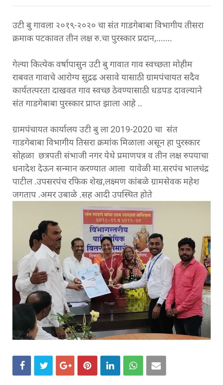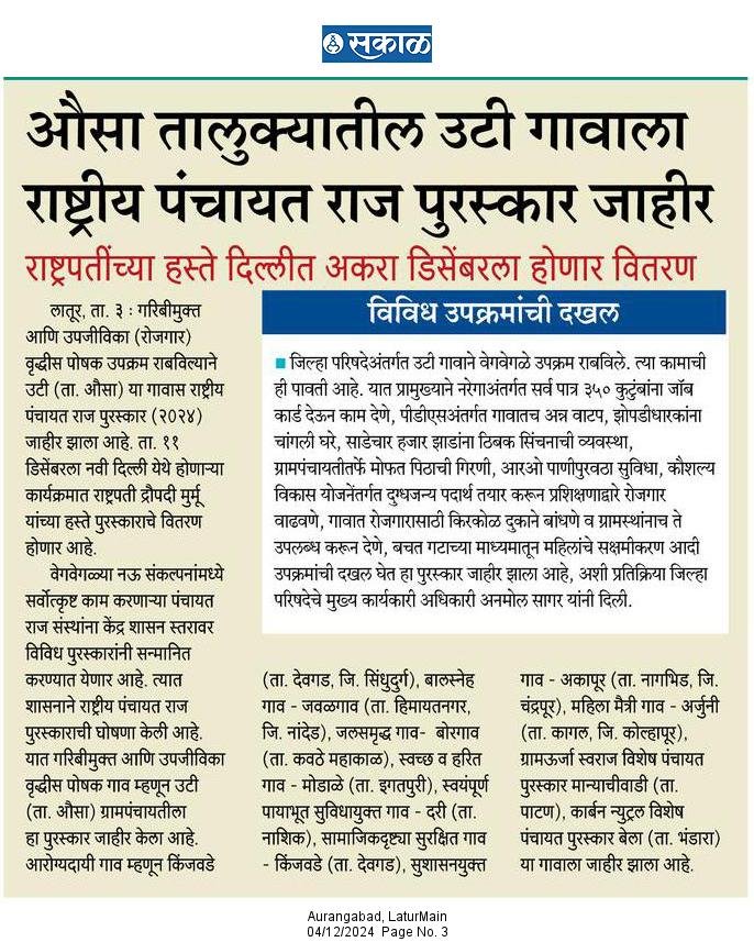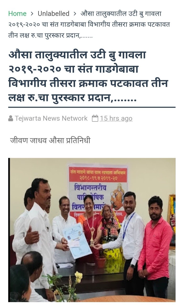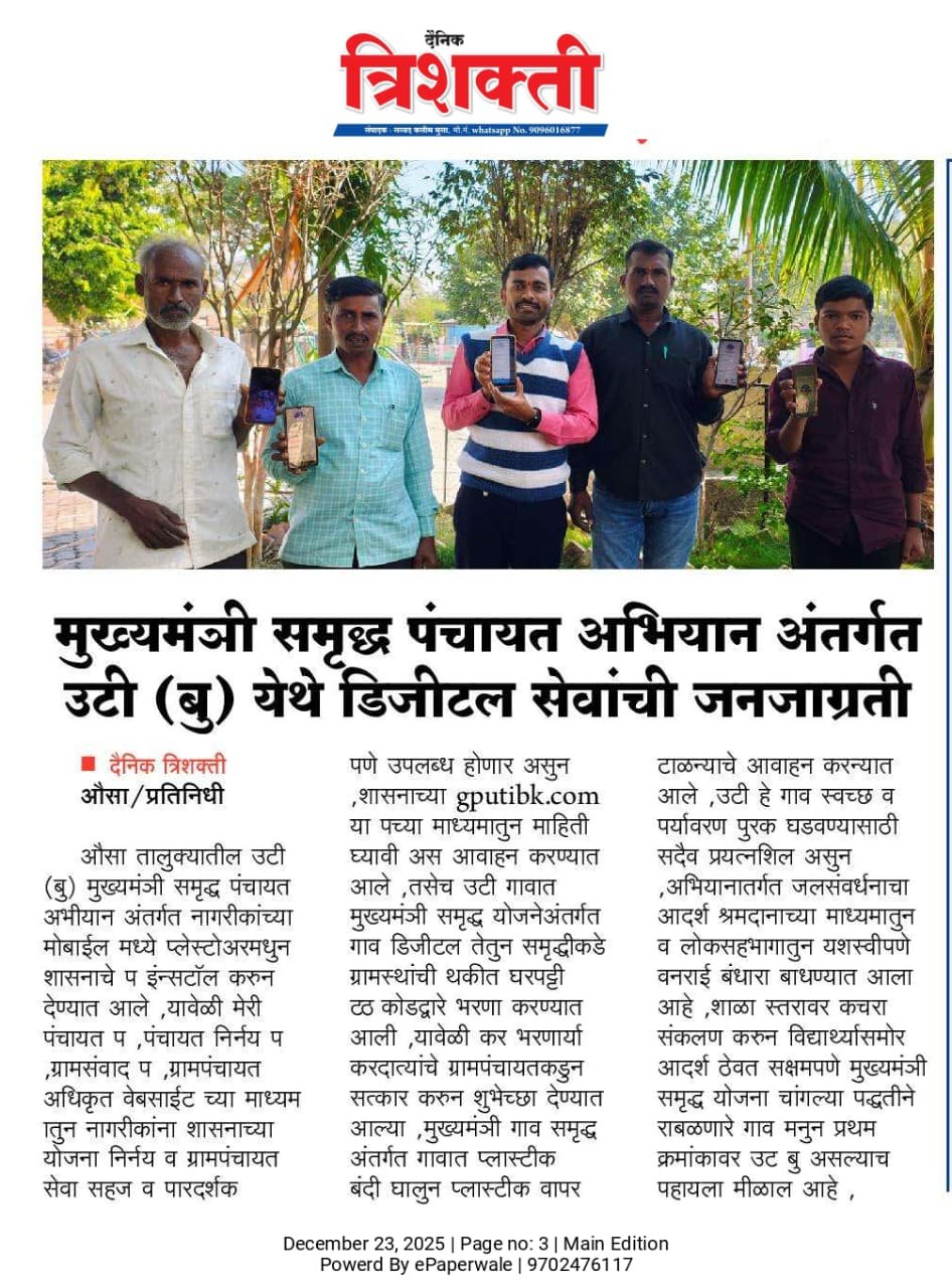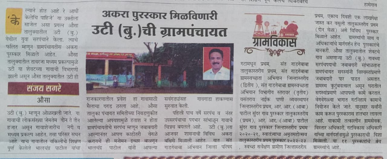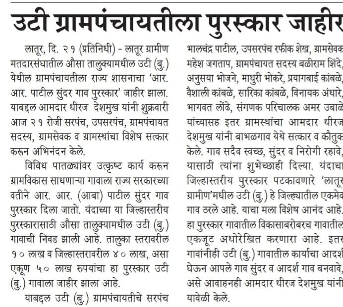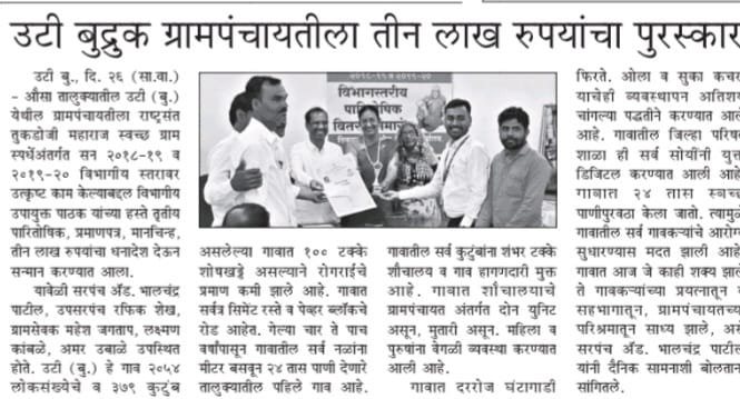 उटी (बु.) गावाच्या उल्लेखनीय कार्याची दखल विविध डिजिटल मीडिया घेतली आहे.