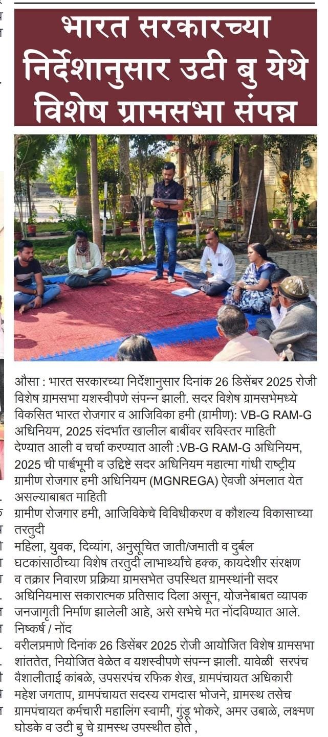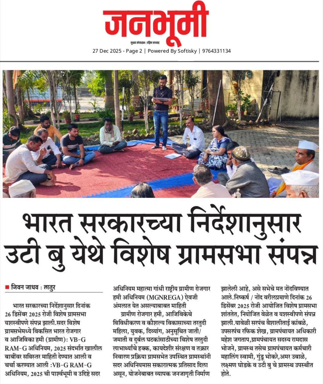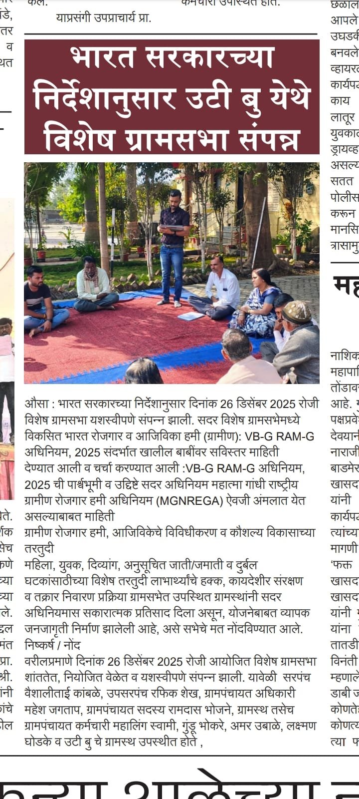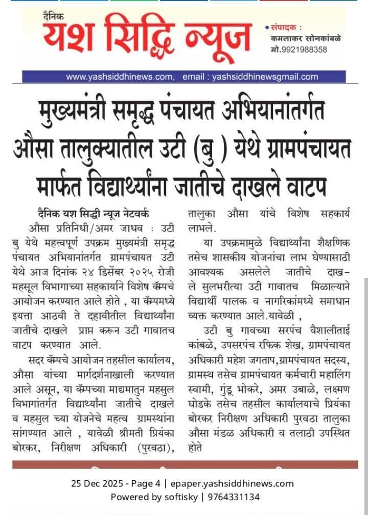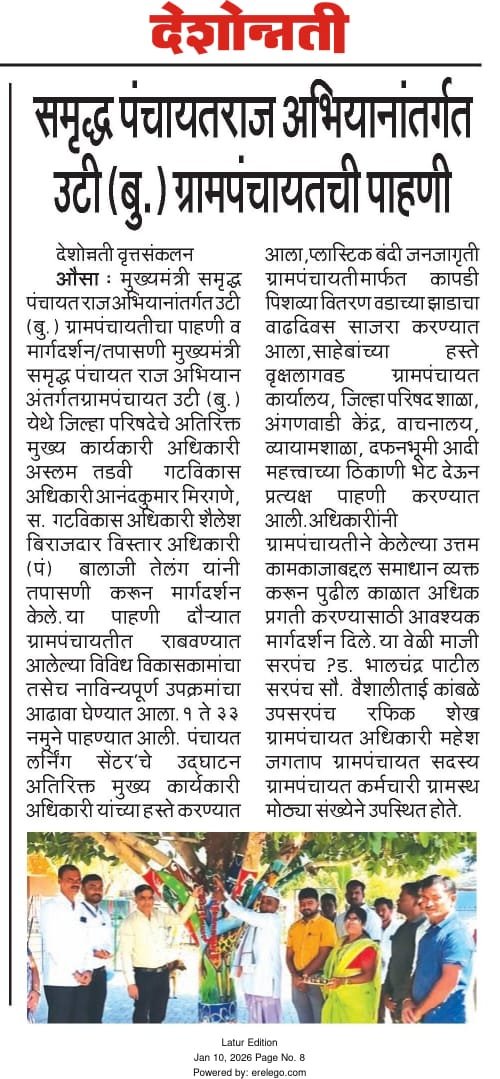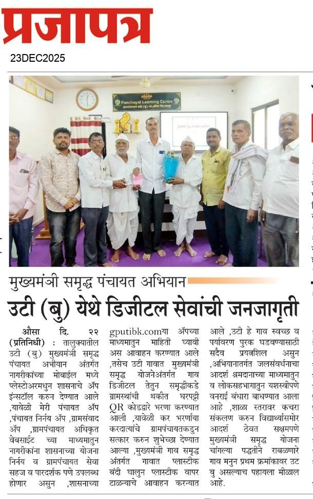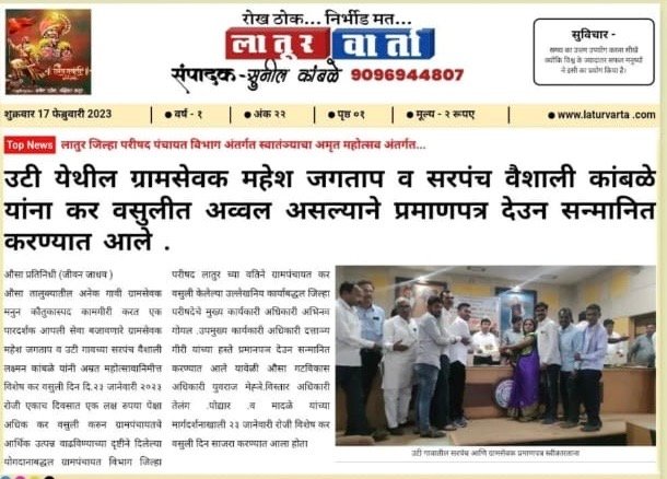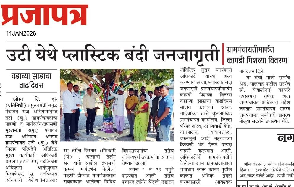 उटी (बु.) गावाच्या उल्लेखनीय कार्याची दखल विविध डिजिटल मीडिया घेतली आहे.
