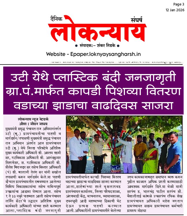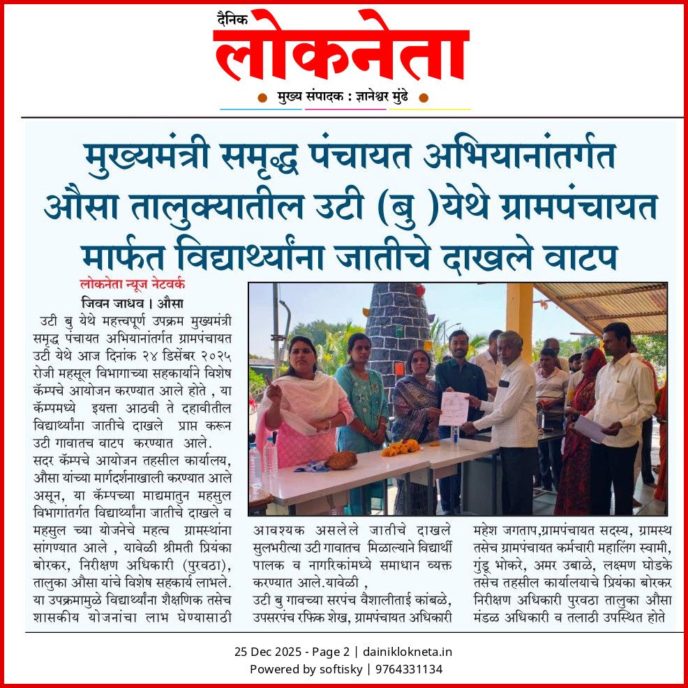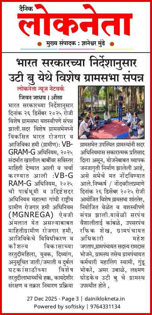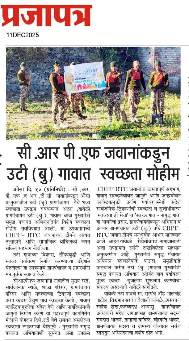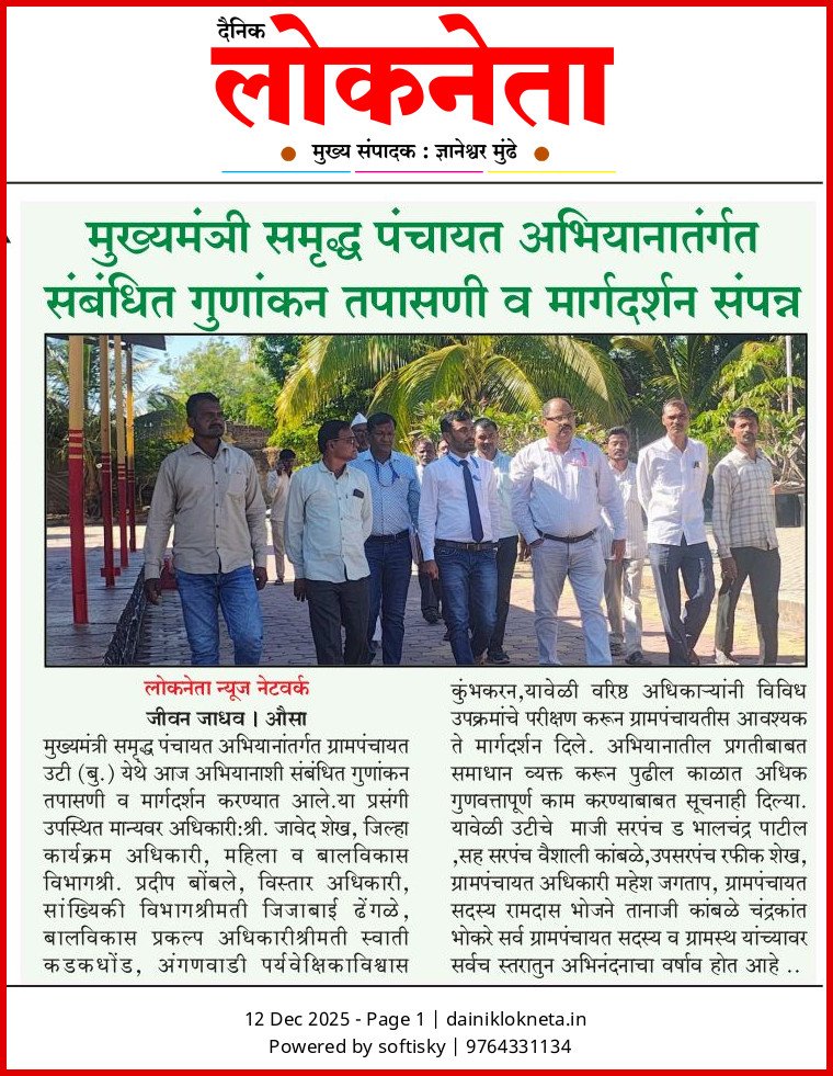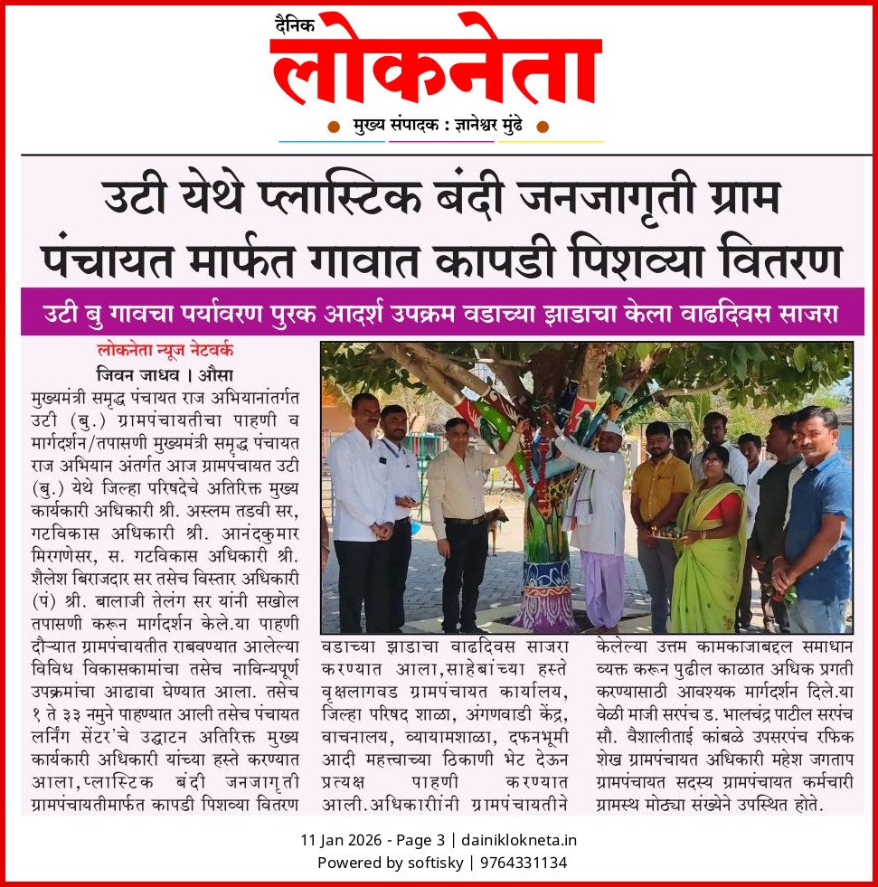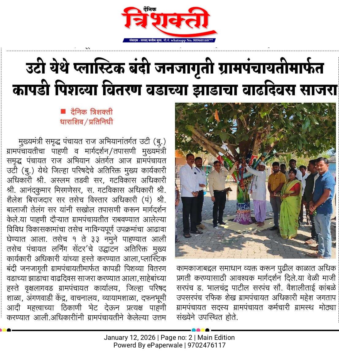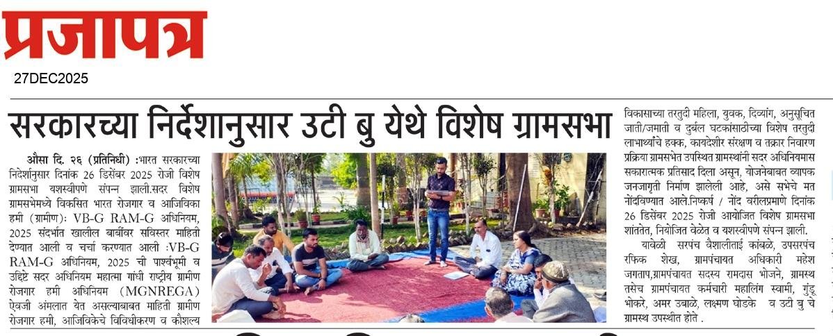 उटी (बु.) गावाच्या उल्लेखनीय कार्याची दखल विविध डिजिटल मीडिया घेतली आहे.
